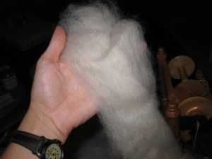 I wanted a bed of the stuff to roll around in. I resisted the urge to just cover a pillow in it and split the batts into roving and prepared to spin.