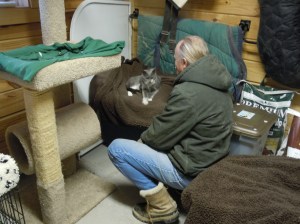 Mom has been missing her daily quota of cat interaction since we left the barn where we used to board our horses, so she was really looking forward to some feline love. Ironically, Whisper, the grey male, immediately took to Dad. They are BFFs.
