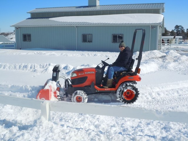 Two and half feet of snow really make it hard to get some exercise, if you are a horse or an alpaca, unless you have very clever parents. All the animals were going a bit stir crazy (which can get downright dangerous), so Mom and Dad innovated!
