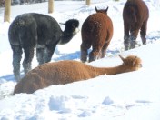 Not surprisingly, Mikayla and Marsy just are not into the fluffy white stuff. It might mess up their hair. But our most playful and sweet alpaca, Tulip, loves it nearly as much as she loves the sprinkler!