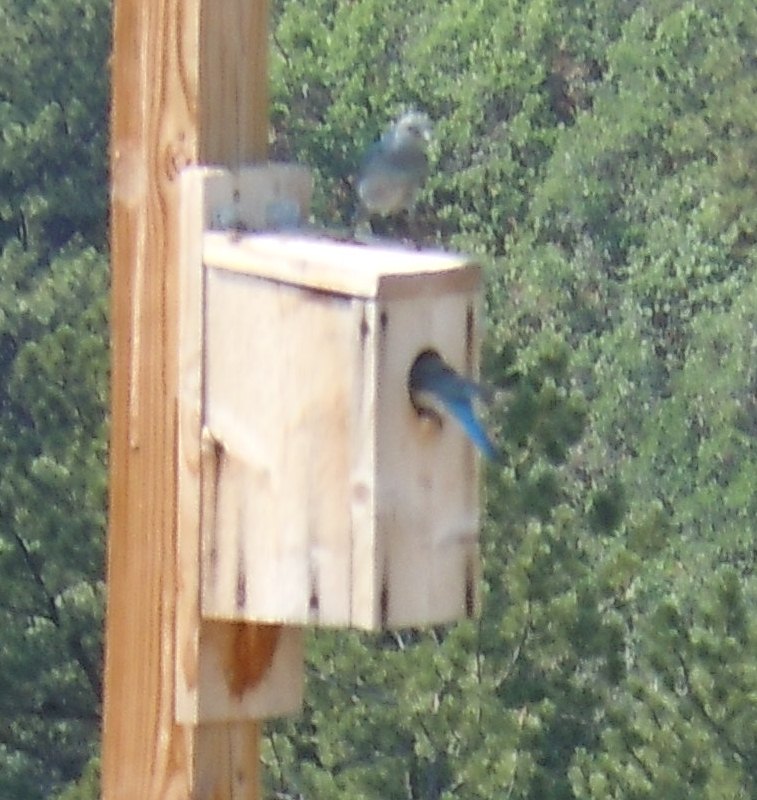 A pair of my favorite birds have nested in the bird house at the end of the driveway!