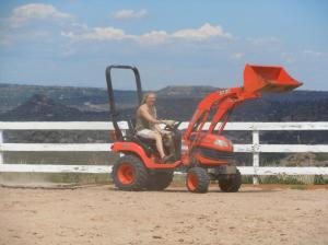 It was kind of a dusty job, but very satisfying. Trying to figure out how to make sharp turns, so that your tire tracks always get broken up, is kind of fun for someone with my sort of personality. I also helped bring some bales of hay up from storage in the lower barn, and of course, I moved poop from one place to another. That one is pretty much an every day chore though.