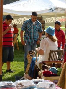 • Yes, the weather is probably the single most important thing to making a craft fair go well, and the one thing we have the least control over. All of our days have been almost hot! I could wish for just a bit of crispness to encourage folks to buy warm scarves and hats πŸ™‚