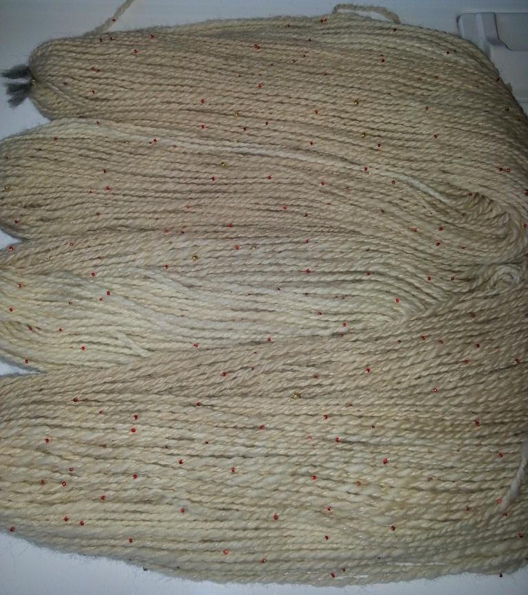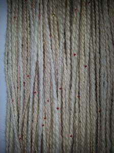 I’ve been spinning up a mess of that Peppermint sprinkles yarn. About halfway through the process, I finished Morocco’s fleece from last year and started on this year’s fiber. Unfortunately, despite coming from the same alpaca, skeins made from last year’s fiber are an entirely different color from this year’s fiber.