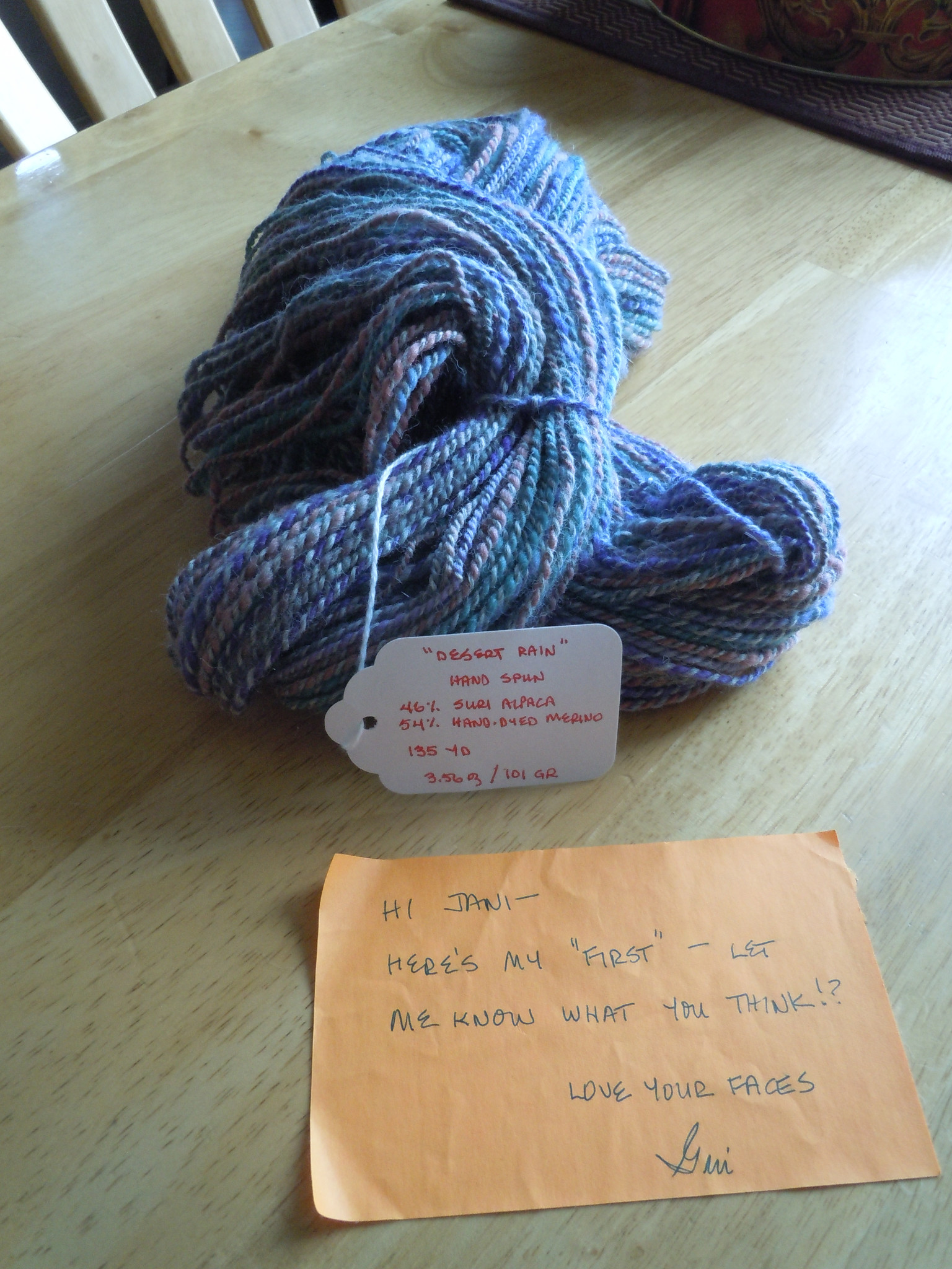 Aunt Geri discovered the art of needle-felted alpaca fiber from my trials and tribulations. She has joined Cliff House Alpacas, offering her significant knitting skills. In addition to knitting Geri has more recently taken up the art of spinning.
