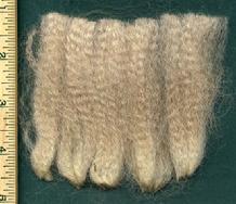 There are two types of alpaca fleece – huacaya and suri.  Huacaya fleece has more of a natural wave or “crimp” which helps the yarn made from it retain its shape over time.  Suri fleece is longer, smoother, and premium due to its natural luster that does not diminish during processing – making radiant yarn!  Cliff House alpaca Bravado (aka “Surfer Dude”) is a suri.