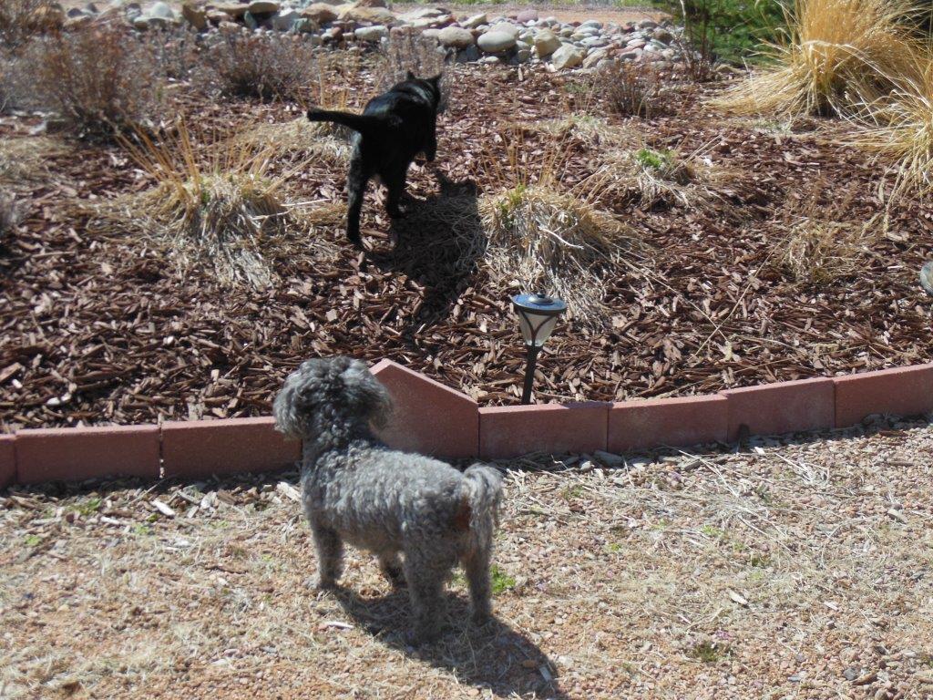 As I, Momma, sit at the kitchen table trying to come up with an idea for our blog post today, the sky has turned to grey and rain is falling on our 40 acres of land. Sunday had been a sunny day, and not only did Squeaky and Whisper discover the cat nip, Olive our toy poodle, discovered the cats.