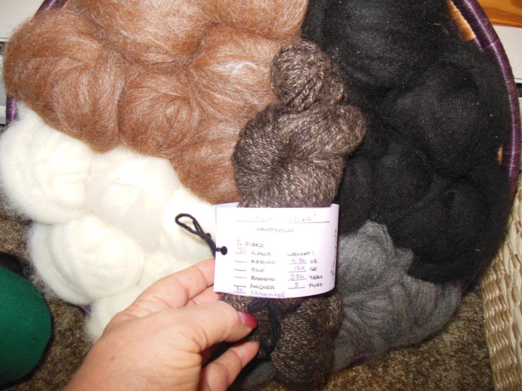 The end result is a rich, very soft, I wish everyone could touch this blend of alpaca and cashmere, 3-ply yarn.