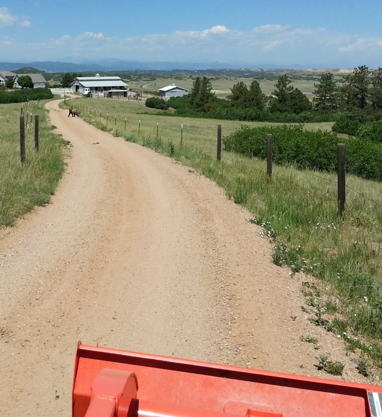 Yesterday was different! Gordon had a close encounter with our neighborhood brown bear, who was obviously on his way south. Our ranch has a draw, which serves as a game trail for deer, elk, coyotes, bobcats and bears. This wildlife crossing is a source of constant joy for us; mother nature is generous. So… the draw is near the manure pile, and Gordon was spreading manure yesterday. Need I say more?