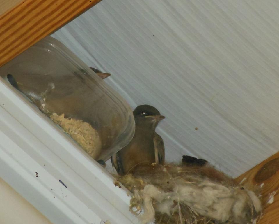 With the baby’s life in jeopardy, Kirstin’s internet research showed Kingbirds will accept help from humans. They did accept what we had to give, and the baby became a healthy bug eater just like its parents. Visitors have asked us why we don’t have bugs in our barn, and I tell them our barn has birds who eat bugs.