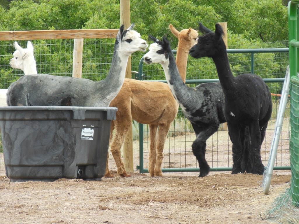 Dad here, with the July heat, I’ve noticed the alpacas go through all of the water buckets we fill up for them every day. The alpacas love to drink out of the horse’s stock tank, and because Heidi and Boogie are possessive of their water tank; I thought why not give the alpacas a stock tank of their own.