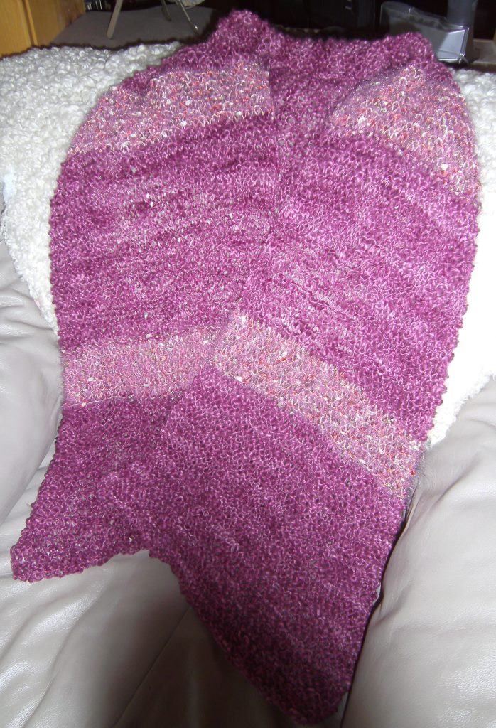 Our top notch sales team sold the only shawl we had at Western Welcome Week so I (Aunt Geri) was intent on finishing another one for our Cliff House Charity sale benefiting the Colorado Humane Society and Cimarron Sky Dog Reserve on Sept. 7th. So, in between making green chili stew, we’re having a Bar-B-Q at our fundraiser, and baking and decorating the cutest cookies for the benefit sale; I whipped up this shawl. It’s a yummy hand-dyed alpaca silk blend with a polymide accent for the Fairy’s fancy! I knit it with a somewhat open stitch pattern so it won’t be too warm.
