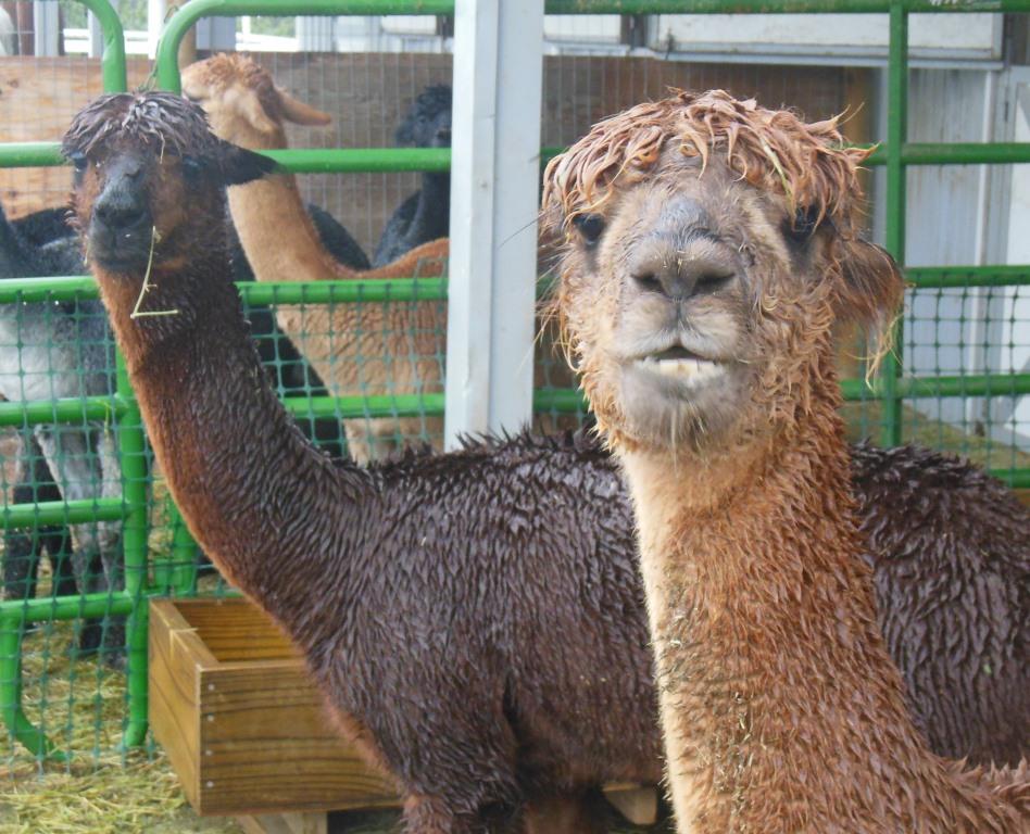 Good morning everyone. The local weatherman tells us the rain storm we’ve been living with since Monday afternoon won’t be leaving us until next week. The alpacas aren’t happy with that news as you can see.