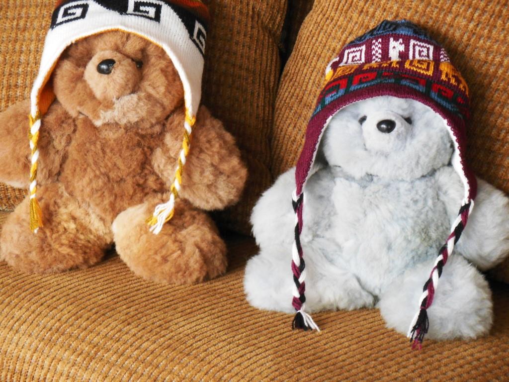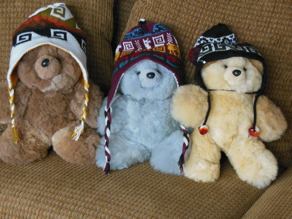 It was cold yesterday, the cats wanted to complain about it, the alpacas wanted to kush and chew and the horses just wanted to be left alone so I, Momma, came inside and played with the bears. I’m looking for models for our new line of products from Peru, and when I asked the bears if they wanted to help, they said, “Yes.”
