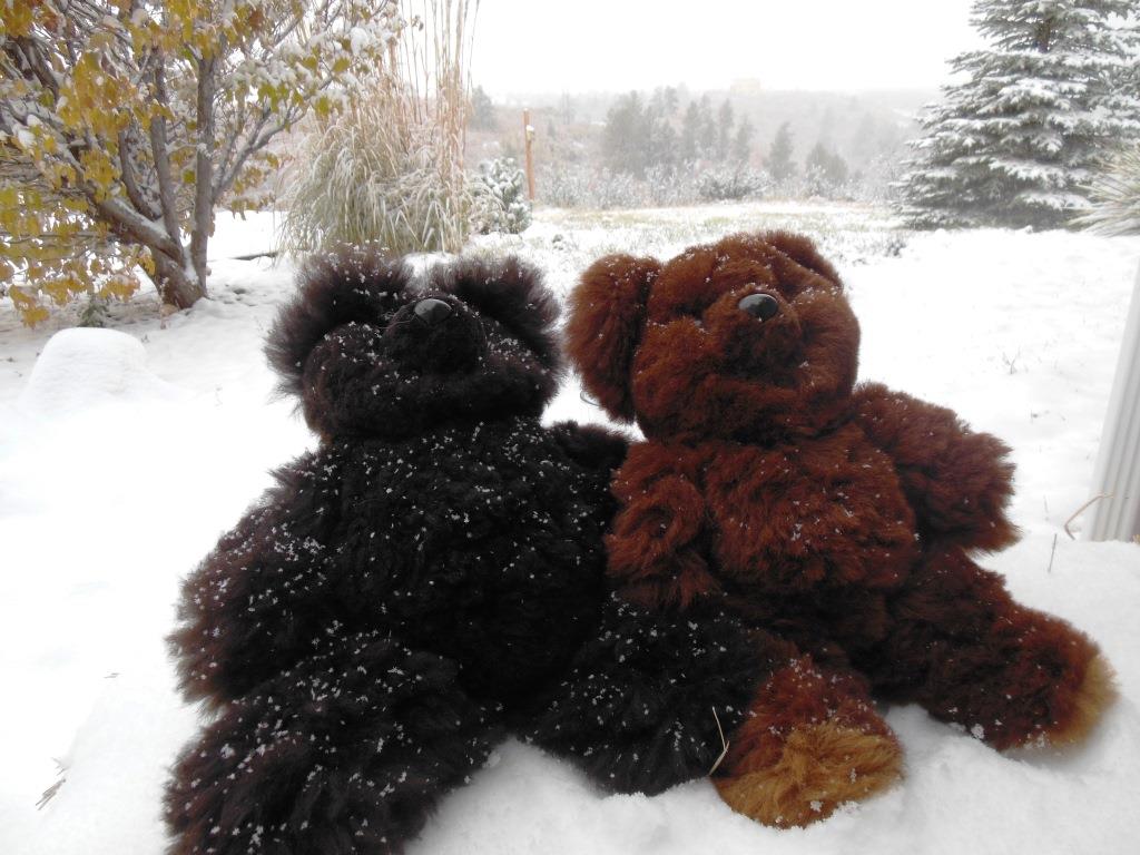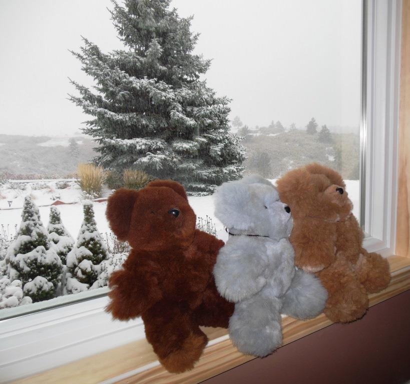 We woke up to snow this morning, but that didn’t stop the bears from wanting to go outside and play. How do you say “No” to a bear?