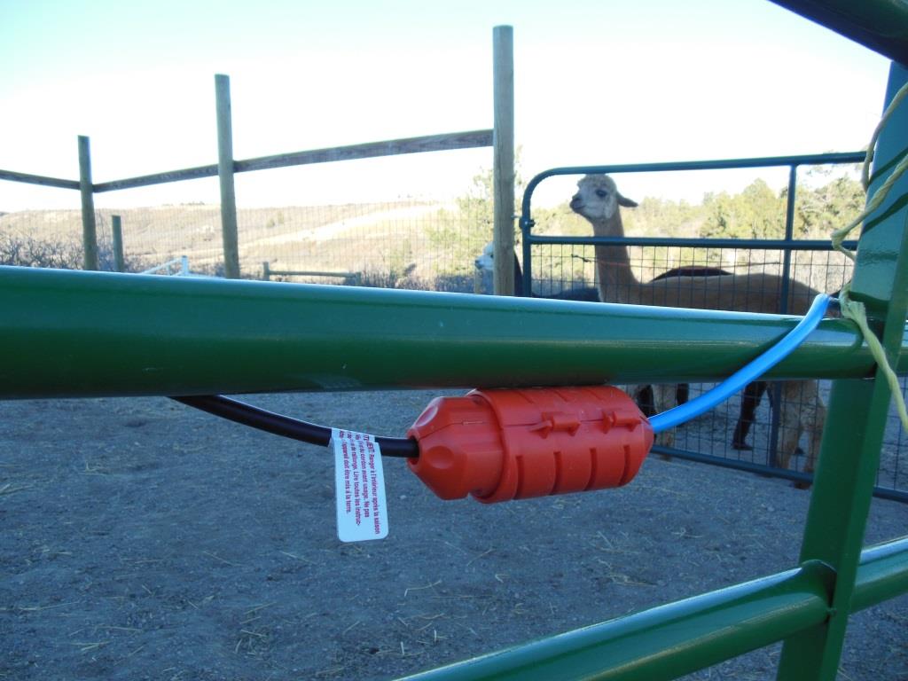 Alpacas are curious (you can see Tulip watching me in the back ground). To keep them from being shocked as well as to keep the moisture out, I also purchased a coupler that encases the connection. We’re good to go now!