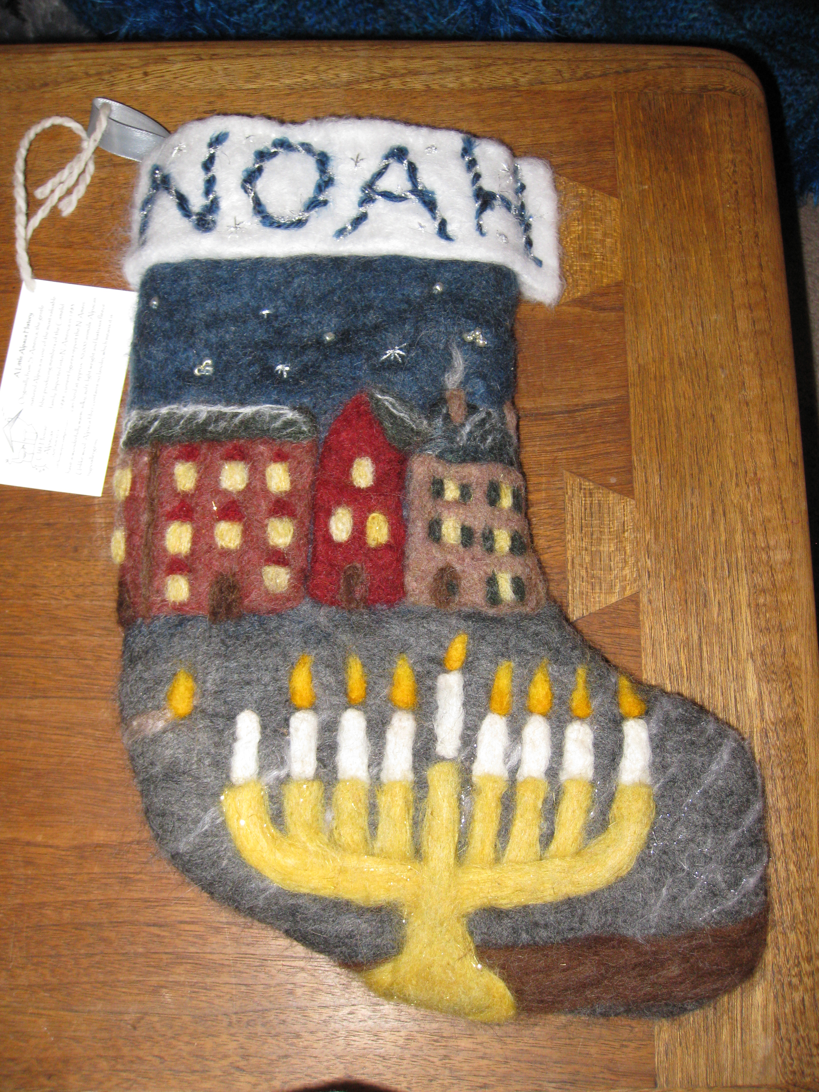 I made a set of Christmas/Chanukah stockings for my dear friend Sarah. The window frame yarn was spun by all of her friends here in town.