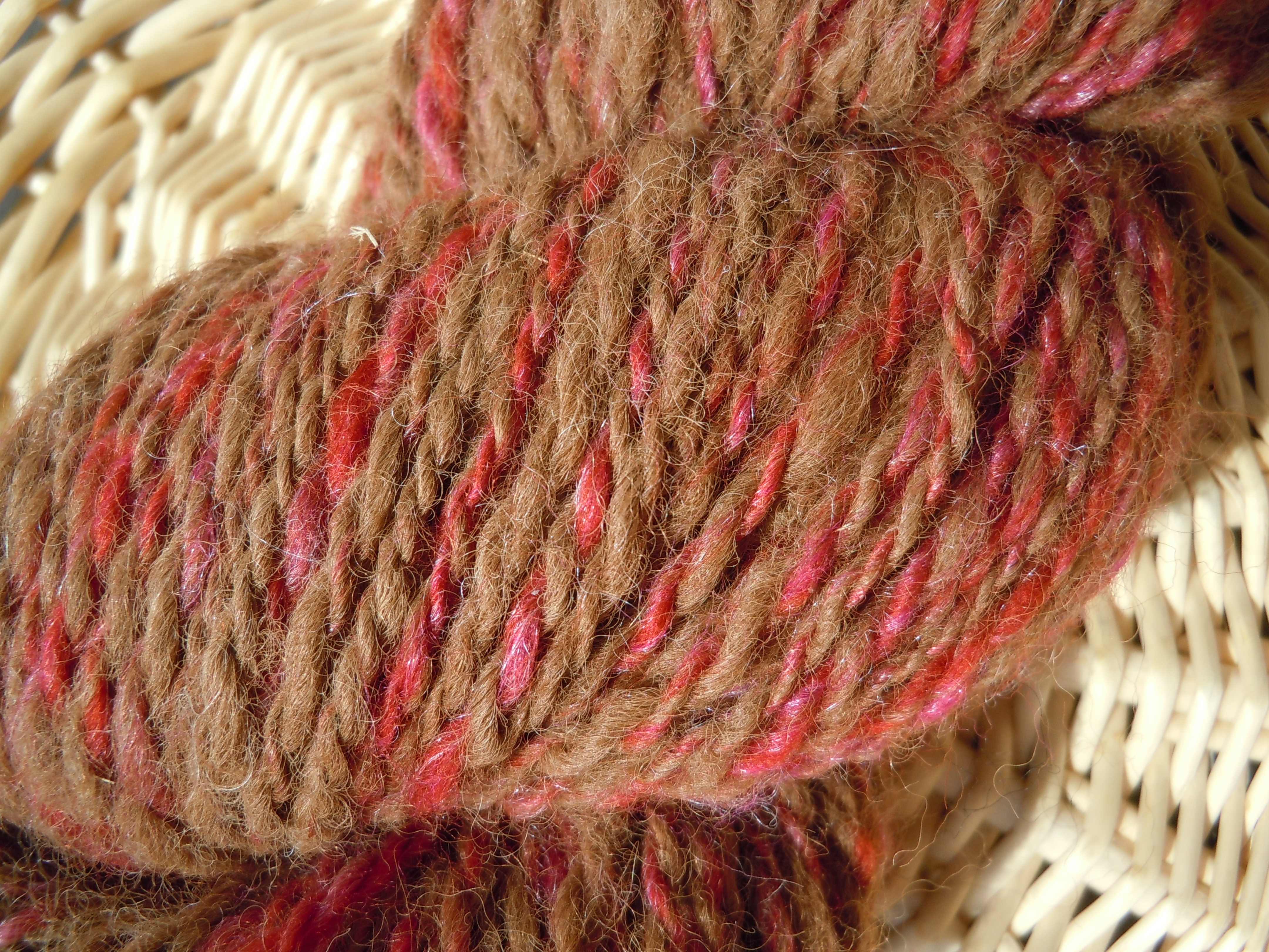 Red Rosy: Rosy's fiber, plied with one strand of hand-dyed merino/silk mix